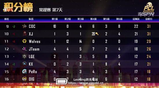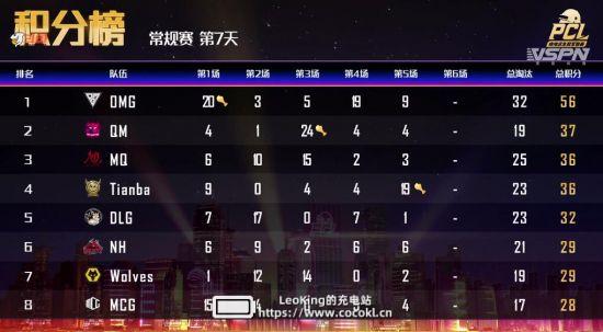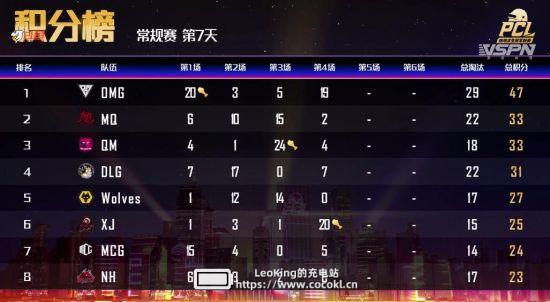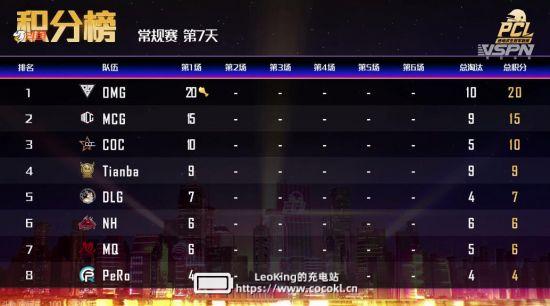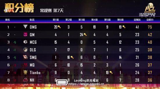 常规赛第七日比赛全部结束,恭喜OMG、QM、MCG拿下今日前三。
